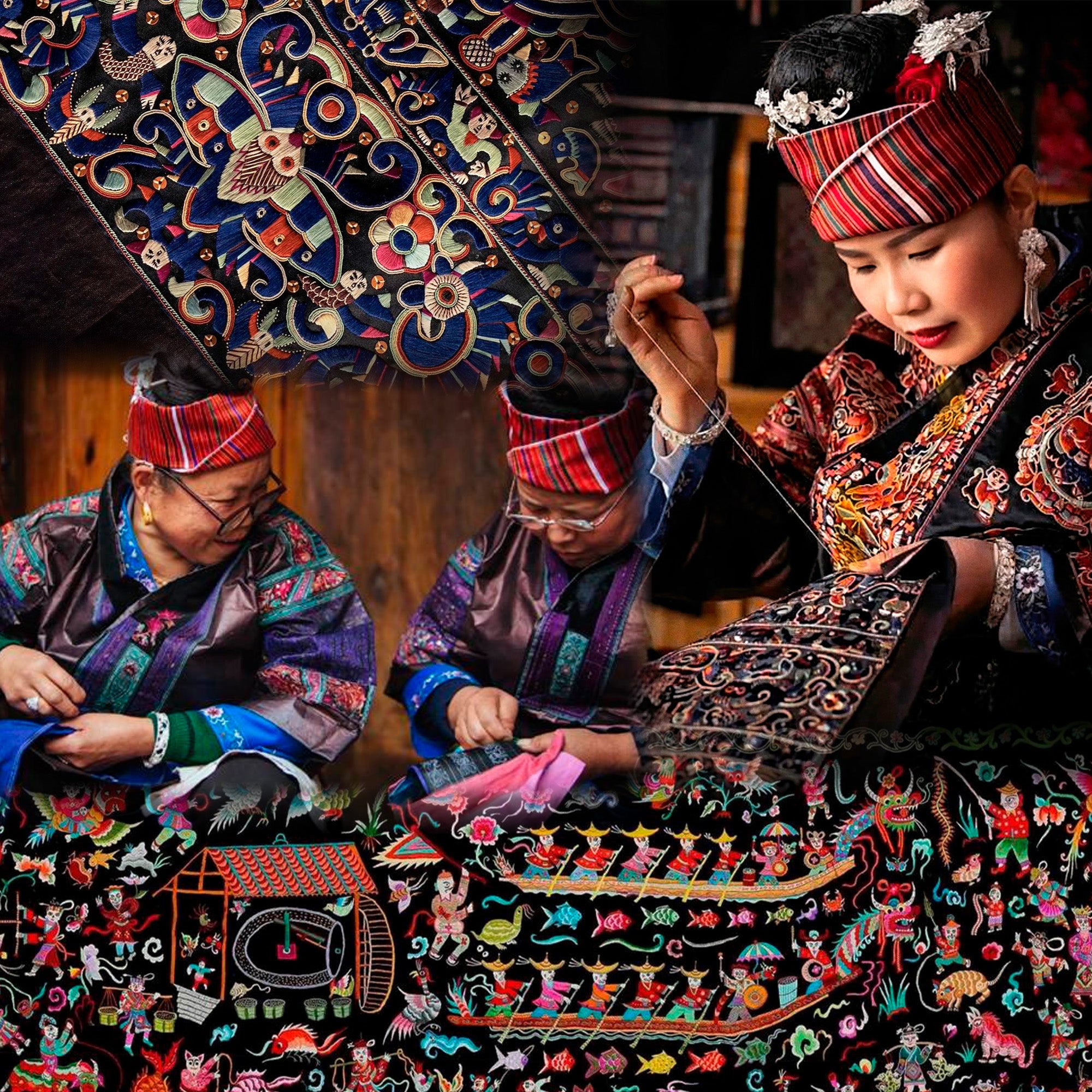With no written language, Miao artisans use embroidery to pass down history and legends, weaving love and blessings into each stitch.