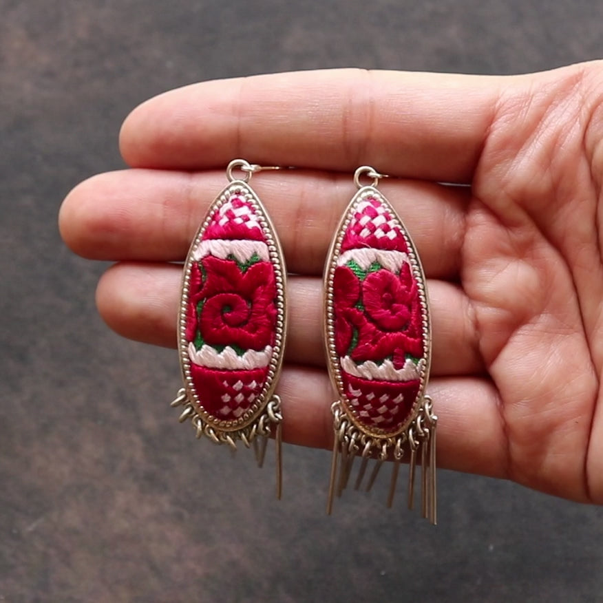 Embrace the timeless elegance of our colorful hand-embroidered Harmony Ovals. These earrings blend oval curves with Miao heritage, adding sentimental grace to every moment.