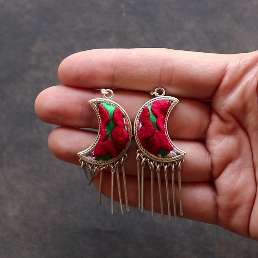 These colorful moon-shaped hand-embroidered earrings will bring you a sense of serenity with a tinkling appearance, making them a symbol of peaceful lunar nights.
